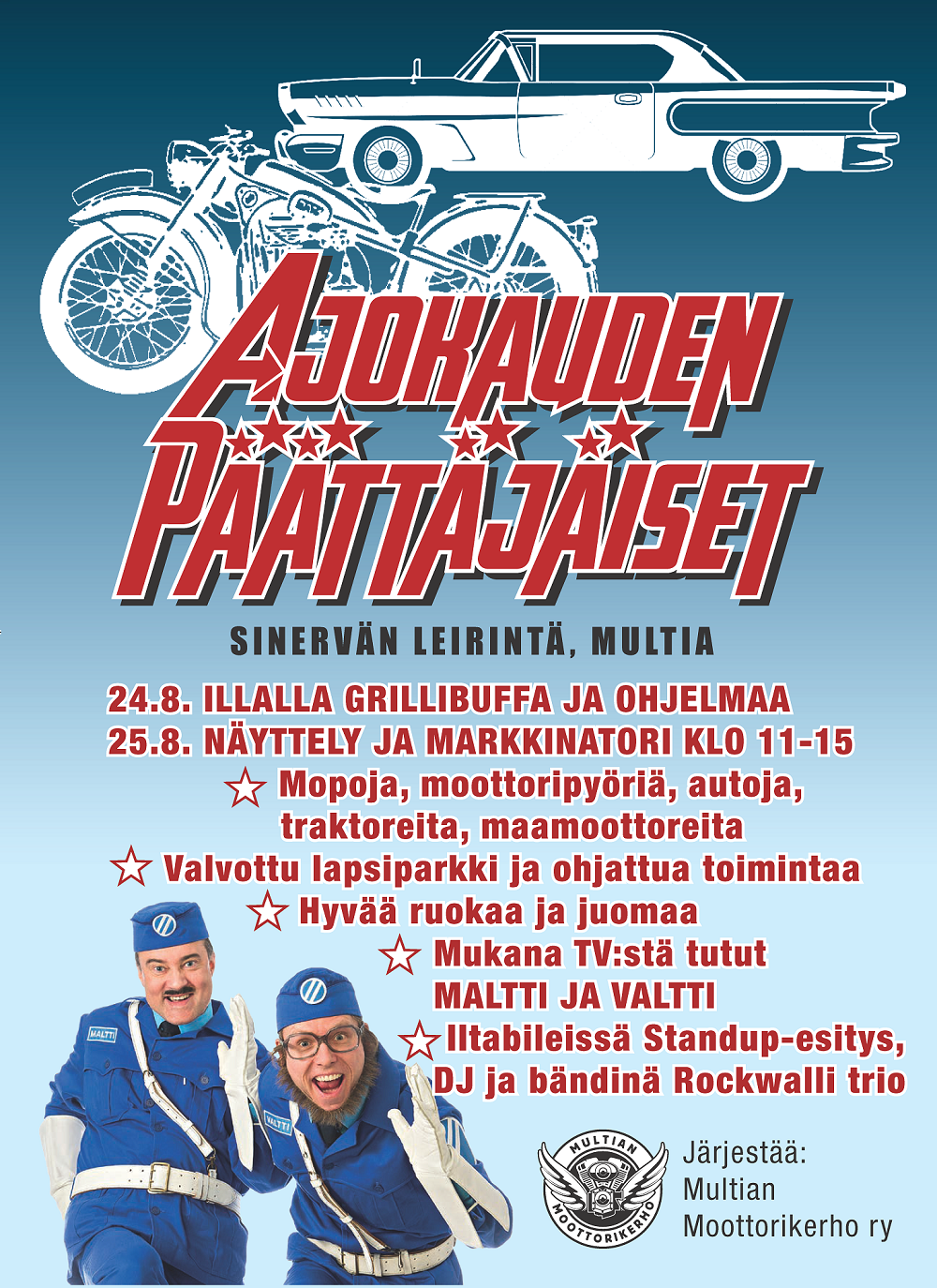 Viidettä kertaa järjestetään Multialla ajokauden päättäjäiset 25.8 Multian moottorikerhon toimesta.