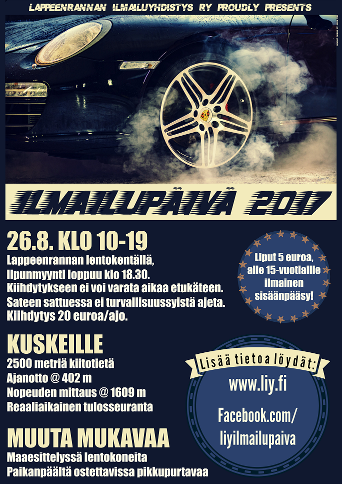 Kiihdytystä omilla autoilla, lentokone-esittelyjä ja pikkupurtavaa.