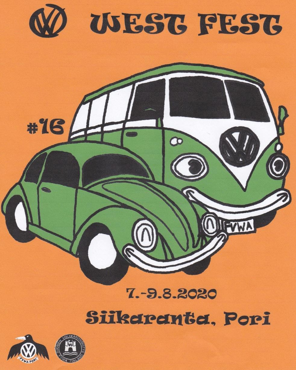 VW West Fest #16 järjestetään Porin Reposaaren Siikarannan leirintäalueella 7-9.8.2020. Tapahtuma alkaa perjantaina noin klo.14.00 ja loppuu sunnuntaina noin klo.12.00.
